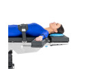 El reposacabezas de doble articulación permite una colocación más versátil del paciente para el equipo de anestesia. La capacidad de inclinación y ajuste de altura del reposacabezas facilita una mejor gestión de la vía aérea del paciente, la intubación traqueal y simplifica la colocación lateral del paciente. La inclinación y la altura se operan mediante dos palancas distintas situadas debajo del reposacabezas.