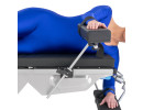 - La brida con casquillo de clip puede utilizarse para fijar accesorios de mesa de cirugía con barra redondeada a los rieles laterales de la mesa. Una palanca de desbloqueo fácil y rápida permite montar la brida con casquillo en cualquier punto del riel lateral.