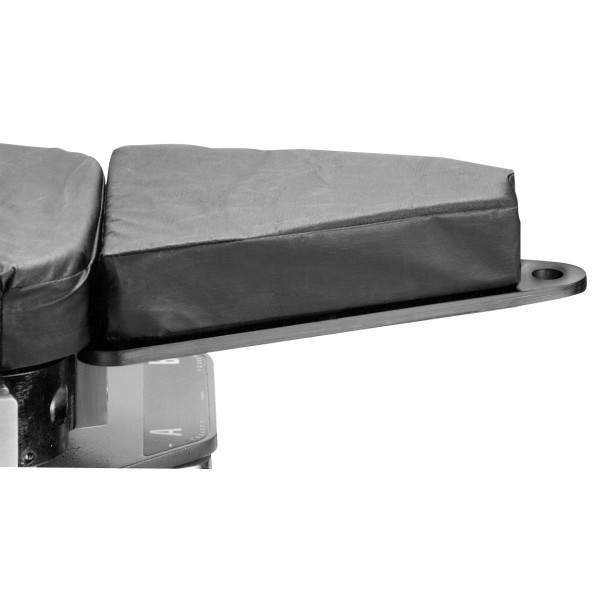 Reposacadera en forma de cuña de fibra de carbono con colchoneta de 5 cm - Adulto. Se acopla a las mesas ortopédicas STERIS para sostener la zona sacra del paciente. De forma triangular. Una posición para un poste perineal.