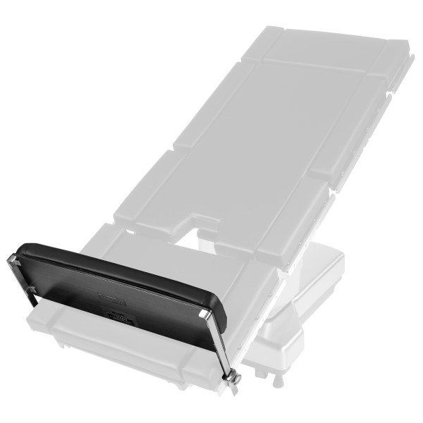 La extensión para pies bariátrica mide 71 cm de ancho para adaptarse a las mesas más anchas equipadas con extensiones bariátricas. Añade 20 cm (8 pulgadas) de longitud a la mesa para pacientes más altos y gira 90 grados hacia arriba para sostener los pies en posición de Trendelenburg invertida.