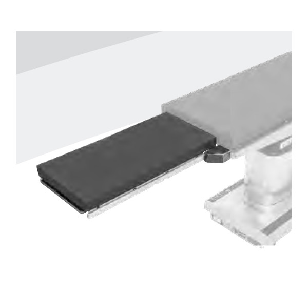 Plataforma de 30,5 cm de ancho x 76,2 cm de largo que se monta de forma segura en el extremo de la sección de respaldo/asiento para mejorar el acceso quirúrgico a pacientes infantiles. Los rieles laterales facilitan la colocación de soportes para brazos. Incluye colchón de 51 mm con sistema de fijación autoadherente.