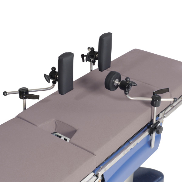 L’ensemble de supports universels stabilise les patients sur les tables de salle d’opération pour les procédures nécessitant une position latérale optimale. L’ensemble comprend (2) supports du corps rectangulaires (BF19) et (1) support du corps circulaire (BF20). Requiert (3) brides pour lame à clipser (BF11) ou autres pinces pour lame similaires. Les supports sont entièrement ajustables. Des coussins mous offrent un rembourrage doux des proéminences osseuses. Les têtes pivotantes s’adaptent aux contours anatomiques du patient et sont verrouillables pour un positionnement précis.