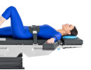 - La cinghia è dotata di elastomero sintetico rinforzato e morsetti a sgancio rapido per un posizionamento facile ma sicuro, regolabile sulle guide laterali del tavolo operatorio.
